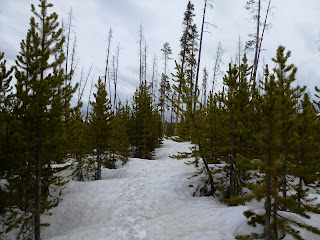 Further Thoughts: When we did this hike during a family vacation to Yellowstone. There was still plenty of snow on the ground, but the hiking trail was easy to follow even with snow. There were very few people that attempted this hike because of the amount of snow that was still on the ground and I would not suggest doing a hike in the snow unless you have the proper equipment. The trail, up to the first views of Ice Lake is wide and well maintained. Once you reach the Howard Eaton trail, it is a typical single track back-country trail. Ice Lake is fairly large and is deep for its size. The area around the lake burned in the 1988 fires that ravaged sections of Yellowstone National Park. You can still find evidence of the fire in the area from the young trees.